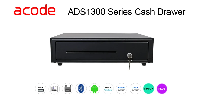 Acode System’s ADS1300 series cash drawer is a full-size, high-capacity solution designed for demanding retail environments. As a trusted Hong Kong supplier of cash drawers, Acode offers rugged, durable drawers that support printer drives and are USB-compatible, making them ideal for high-transaction-volume applications. The product is designed to balance durability, security, and seamless integration with POS systems.