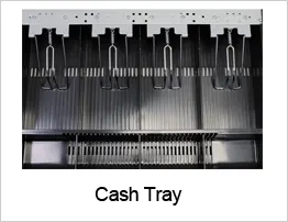 • Organized Cash Tray Includes 4 bill and 8 coin compartments with stainless steel bill press. A media slot allows easy insertion of cheques or receipts.
